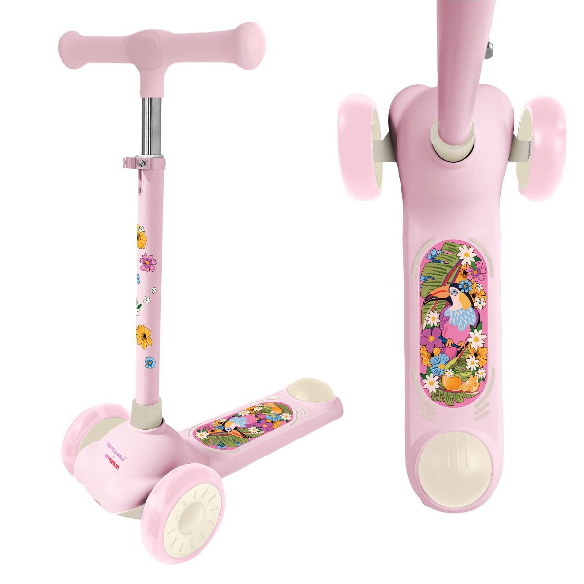 De driewielige balansscooter, ontworpen in samenwerking met het Poolse merk Hey!Popinjay, is een ideale keuze voor jonge avonturiers. Met een kleurrijke print die de aandacht trekt, biedt deze scooter niet alleen plezier, maar ook een veilige en stabiele rijervaring. Dankzij het lichte gewicht van slechts 2,1 kg, gemaakt van een combinatie van plastic en staal, is de scooter eenvoudig te hanteren en te vervoeren. Dit maakt het een perfecte metgezel voor recreatieve ritjes in de buurt of in het park.